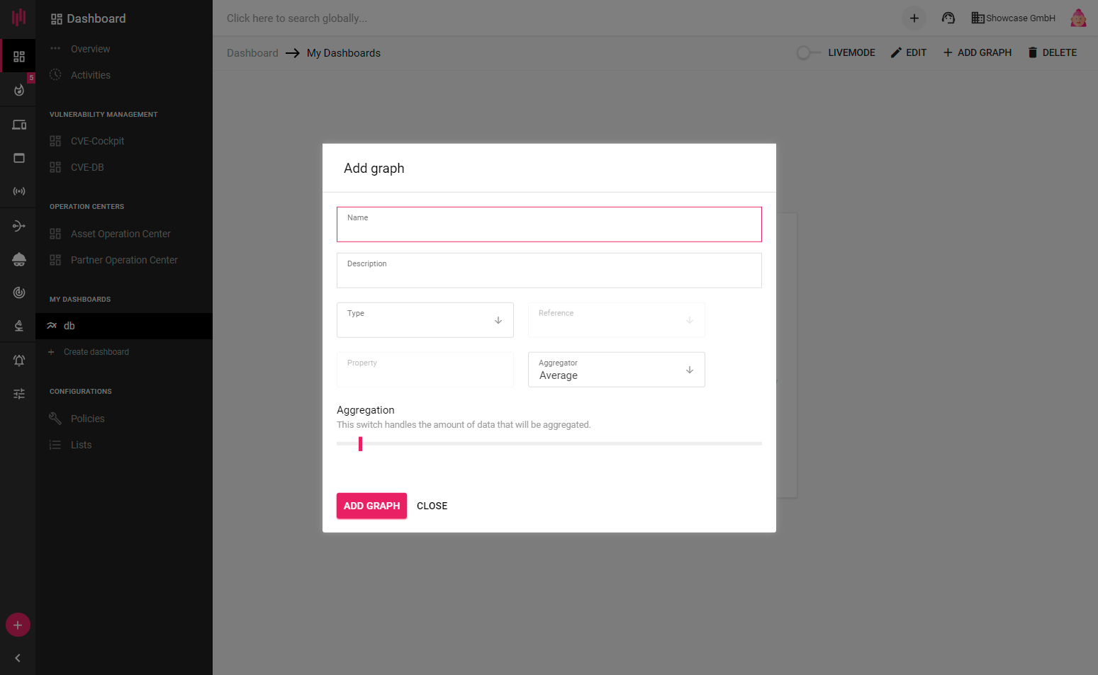 Now you can create your first graph, which will be displayed in the new dashboard. Of course you can create several graphs per dashboard to get the desired overview.