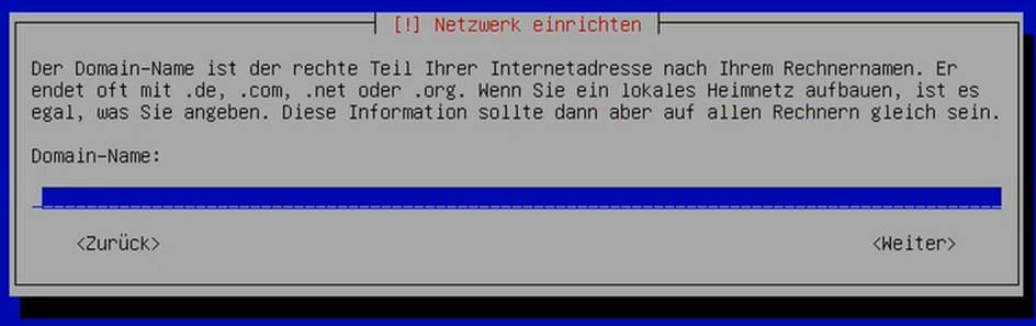 4. Richten Sie anschließend Ihr Netzwerk ein. Geben Sie hierfür Ihren vollständigen Domain-Namen an, bspw. firma.de.&#x20;