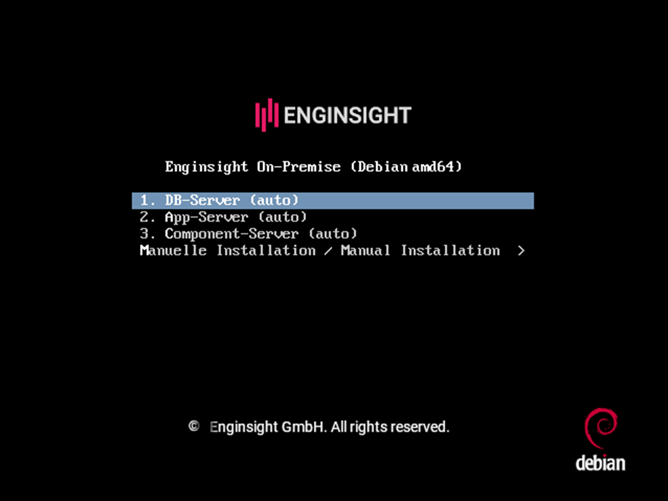 1. Booten Sie den Datenbank-Server mit dem Enginsight Debian-Image und wählen Sie auf der Startseite den entsprechenden Server aus.