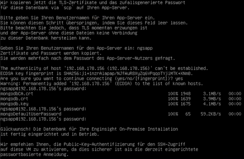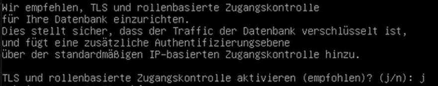 5. Anschließend werden Ihre TLS-Zertifikate ausgestelt, TLS aktiviert, die MongoDB initialisiert, ein neuer Nutzer erstellt sowie Ihr Datenbankzugriff abgesichert.