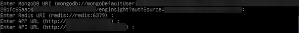5. In den folgenden Schritten werden Sie aufgefordert die MongoDB URI, Redis URI, App URL und die API URL einzugeben. Hier finden Sie bereits eine Eingabe, prüfen Sie diese und bestätigen Sie dies für jede Abfrage.
