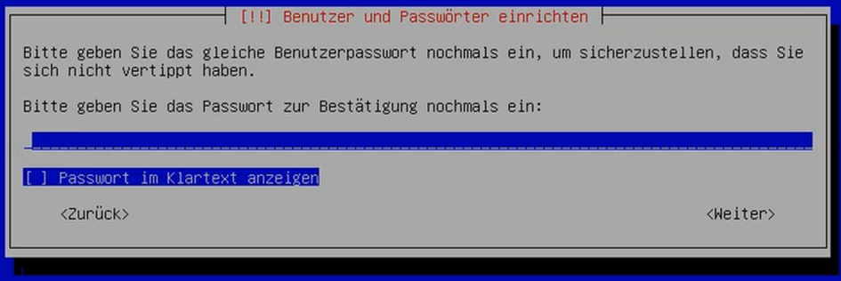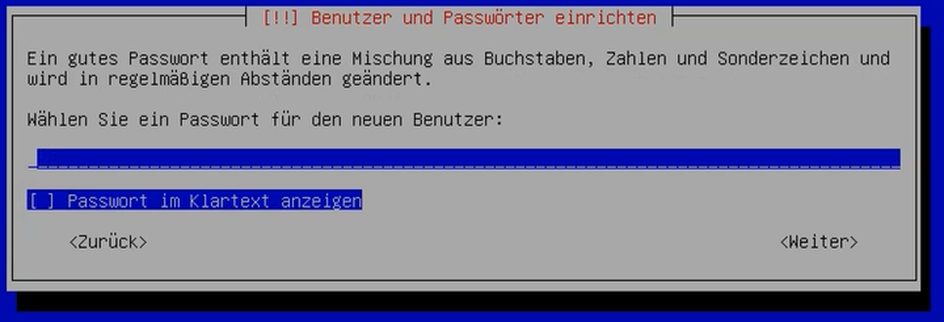 8. Vergeben Sie anschließend ein Passwort für den neu angelegten Benutzer.