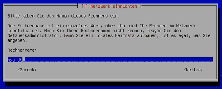 3. Vergeben Sie einen Rechnername, wir empfehlen „**ngs-db**“ für den Datenbankserver und „**ngs-app**“ für den App Server.