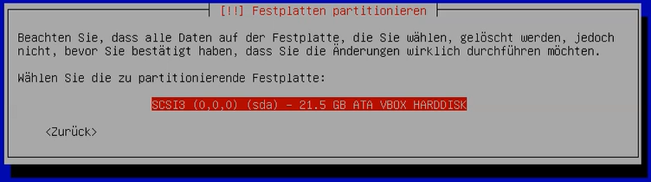 10. Wählen Sie die zu partitionierende Festplatte.