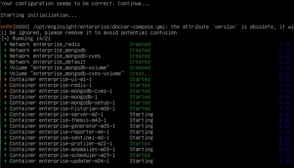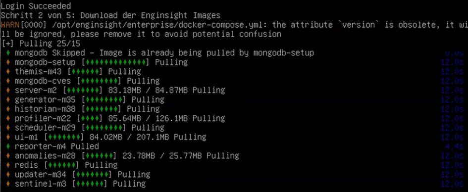 3. Nachdem Sie sich in der Docker Registry angemeldet haben, haben Sie bitte etwas Geduld in der die Enginsight Images heruntergeladen werden.