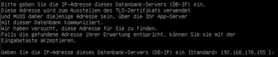 4. Überprüfen Sie anschließend, ob die richtige IP-Adresse des Datenbankservers erkannt wurde, die vom App-Server erreichbar ist. Akzeptieren Sie die IP-Adresse oder geben Sie bei einer Abweichung die entsprechende IP-Adresse ein.