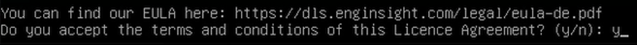 4. Lesen Sie den Endbenutzer Lizenzvertrag und bestätigen Sie anschließend Ihre Zustimmung mit einem: "**y**".