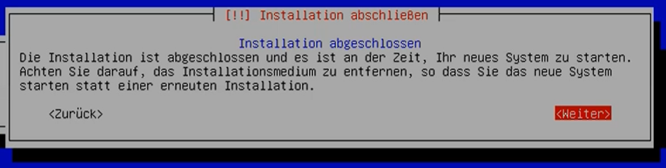 Achten Sie darauf, dass **nicht erneut das Installations-Image** geladen wird, sondern Debian.